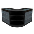 Die LM60 gebogene Ecktheke bietet platzsparende Funktionalität und einen harmonischen Übergang im Ladenlayout. Durch ihr kompaktes, gebogenes Design lässt sie sich problemlos in Ecken integrieren oder nahtlos mit geraden Thekenelementen verbinden, um ein durchgängiges Thekensystem zu schaffen. Die LM60 verfügt über drei offene, zur Kundenseite ausgerichtete Regalböden, die die Produktpräsentation optimieren und den Zugriff erleichtern – ideal zur optimalen Nutzung von Ecken, ohne den Gesamtablauf zu stören.