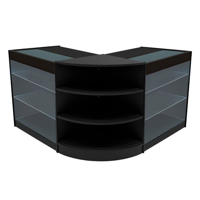 Erstellen Sie ein elegantes, professionelles Verkaufsdisplay mit diesem hochwertigen Thekenset, bestehend aus zwei K900 LED-Präsentationstheken und einer LM60 gebogenen Ecktheke – die perfekte Kombination aus Stil, Funktionalität und Flexibilität für jedes moderne Ladendesign.