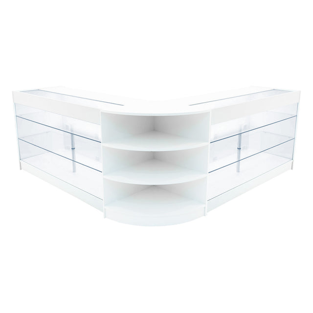 Erstellen Sie ein elegantes, professionelles Verkaufsdisplay mit diesem hochwertigen Thekenset, bestehend aus zwei K1500 LED-Präsentationstheken und einer LM60 gebogenen Ecktheke – die perfekte Kombination aus Stil, Funktionalität und Flexibilität für jedes moderne Ladendesign.