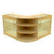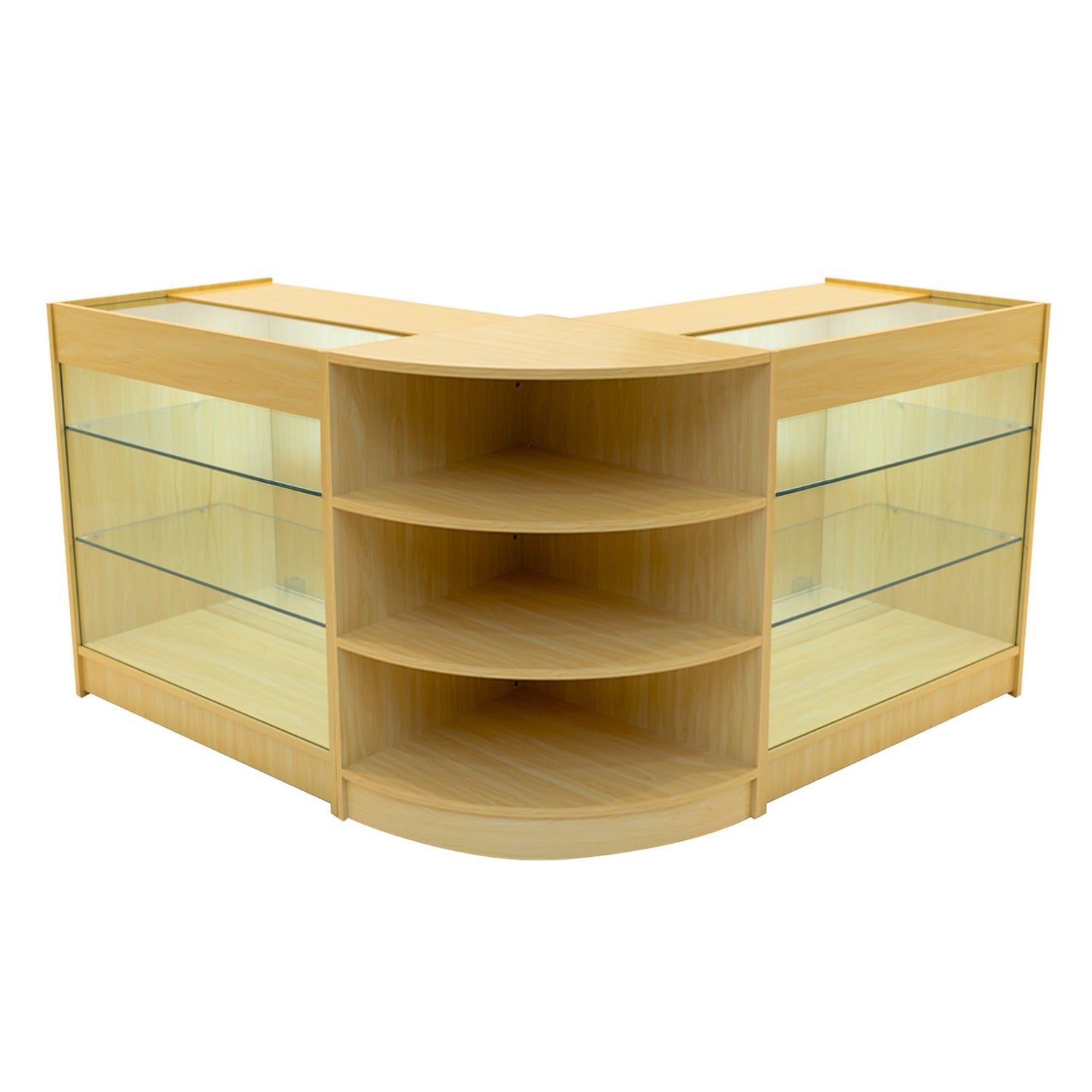 Die LM60 gebogene Ecktheke bietet platzsparende Funktionalität und einen harmonischen Übergang im Ladenlayout. Durch ihr kompaktes, gebogenes Design lässt sie sich problemlos in Ecken integrieren oder nahtlos mit geraden Thekenelementen verbinden, um ein durchgängiges Thekensystem zu schaffen. Die LM60 verfügt über drei offene, zur Kundenseite ausgerichtete Regalböden, die die Produktpräsentation optimieren und den Zugriff erleichtern – ideal zur optimalen Nutzung von Ecken, ohne den Gesamtablauf zu stören.