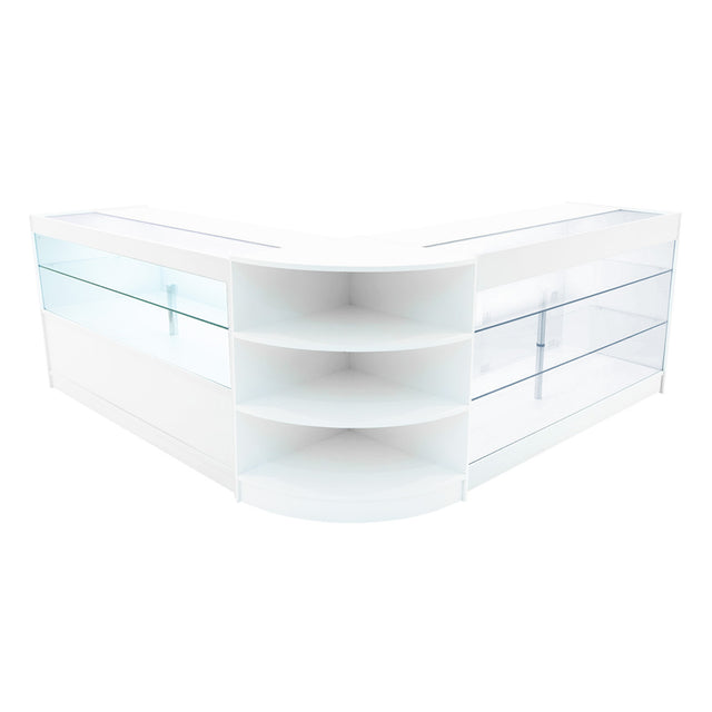 Diese Kollektion weißer LED-Verkaufstheken verleiht jedem Verkaufsraum eine moderne, professionelle Note und bietet eine stilvolle sowie praktische Lösung zur Präsentation von Waren.