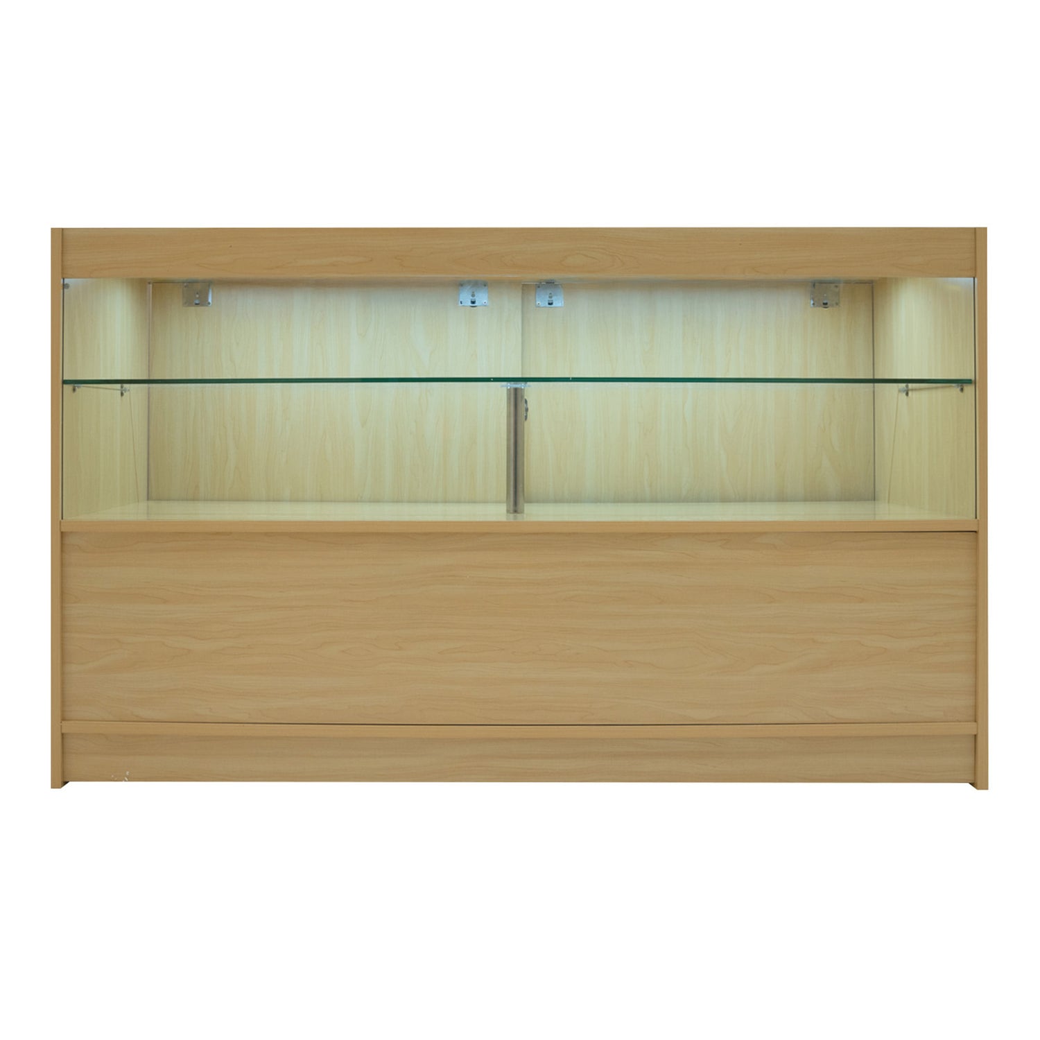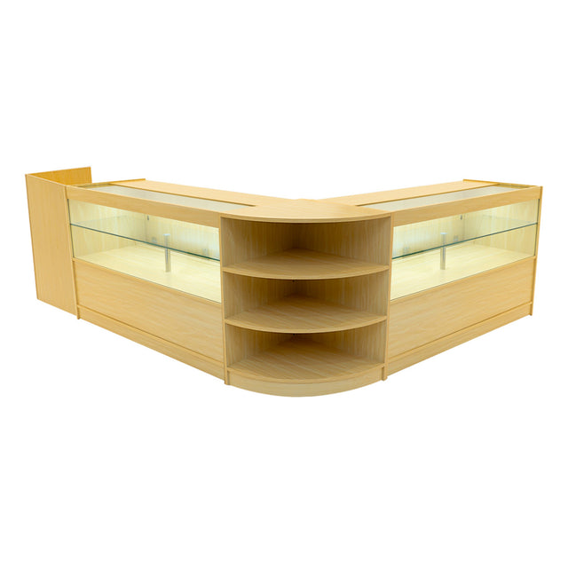 Alle Theken bestehen aus hochwertigem MDF mit strapazierfähiger Ahornfarbiger Melaminbeschichtung, was für Langlebigkeit und ein einheitlich modernes Erscheinungsbild sorgt. Die gehärteten Glaselemente der C1500 sorgen für eine elegante Note in den wichtigsten Präsentationsbereichen.