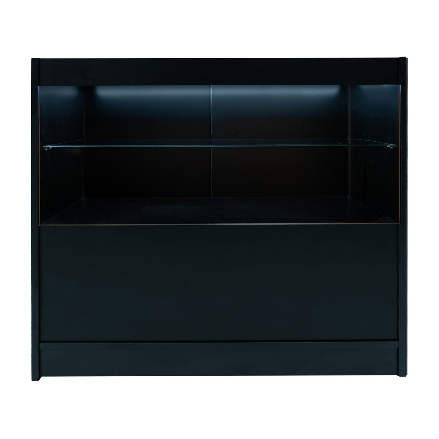 Die C1200 LED-Ladentheke bietet eine schlanke, moderne Präsentationslösung, die visuelle Wirkung mit alltäglicher Praxistauglichkeit verbindet. Jede Einheit ist mit hellweißem LED-Licht ausgestattet, um die Produktpräsentation zu verbessern – so fällt Ihre Ware auch bei geringerem Umgebungslicht ins Auge. Mit zwei offenen Auslageflächen und einem geschlossenen Regal bietet die C1200 die ideale Balance zwischen sicherer Lagerung und ansprechender Präsentation. Abschließbare rückseitige Schiebetüren schützen Ihre Produkte, während die Frontseite ein sauberes, aufgeräumtes Erscheinungsbild bietet. Ob Schmuck, Accessoires oder hochwertige Artikel – die C1200 wird zum professionellen Blickfang in Ihrem Geschäft.
