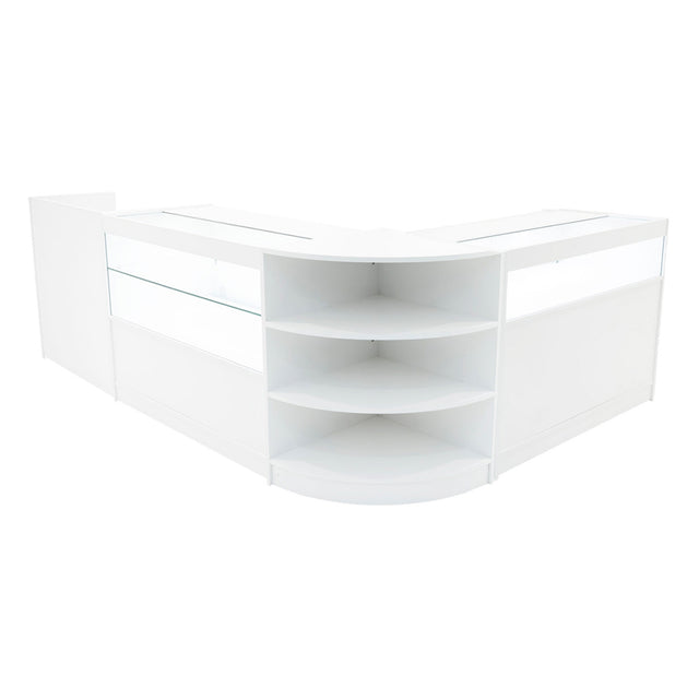 Der LM60 gebogene Eckcounter fügt sich platzsparend und fließend in Ihre Ladenaufteilung ein.