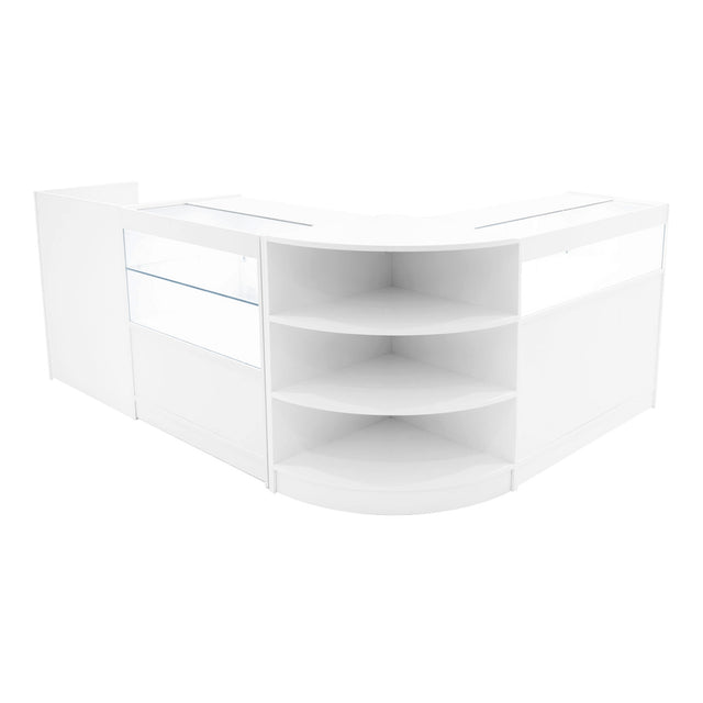 Der LM60 gebogene Eckcounter fügt sich platzsparend und fließend in Ihre Ladenaufteilung ein.