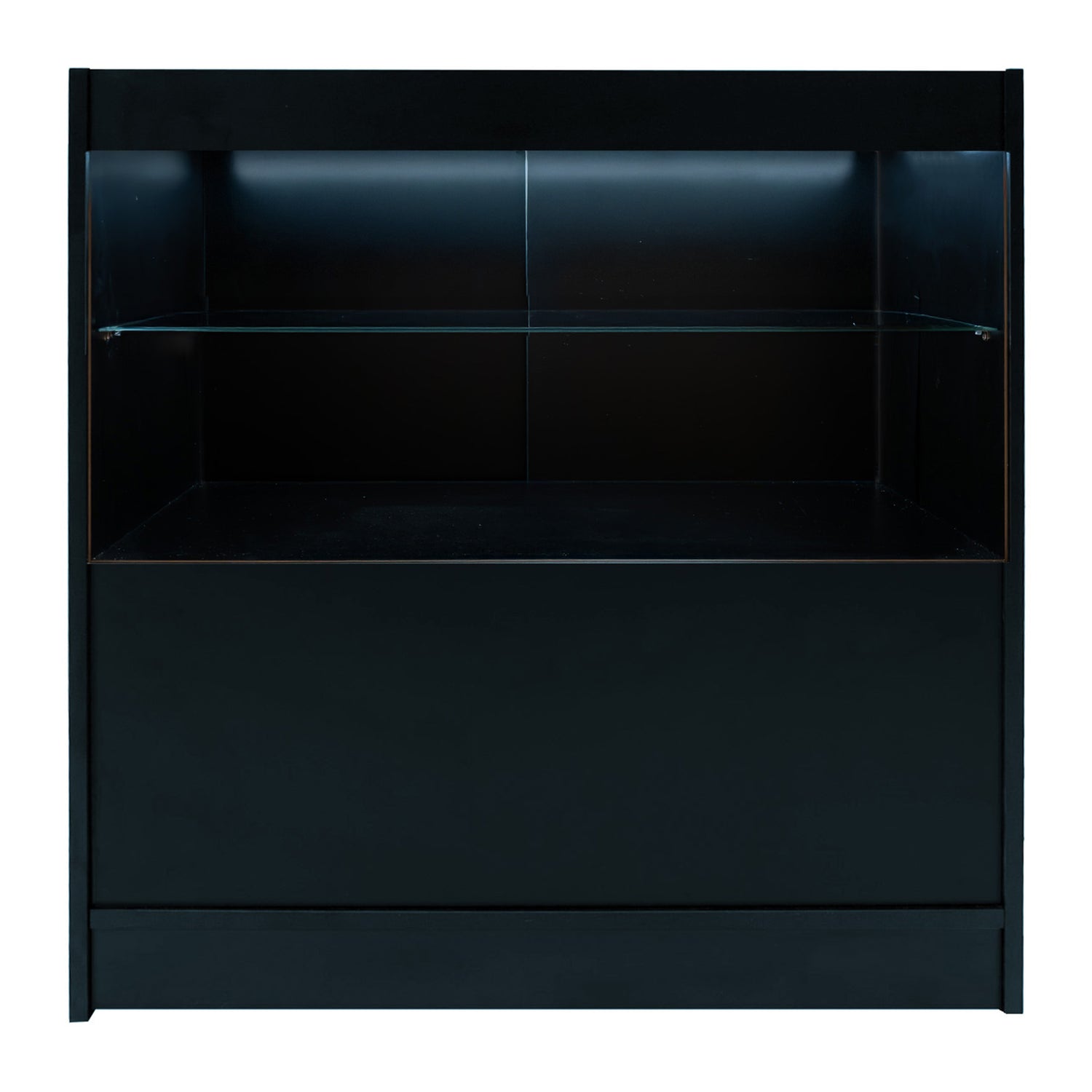 Die LED-Verkaufstheke C900 bietet eine schlanke, moderne Präsentationslösung, die visuelle Wirkung mit alltäglicher Praktikabilität verbindet. Jede Einheit ist mit hellweißem LED-Licht ausgestattet, das die Sichtbarkeit der Produkte verbessert und Ihre Waren auch bei schwächerer Beleuchtung in Szene setzt. Mit zwei offenen Präsentationsfächern und einem geschlossenen Fach bietet die C900 ein ausgewogenes Verhältnis zwischen sicherer Lagerung und Warenpräsentation. Abschließbare Schiebetüren auf der Rückseite schützen das Lagergut und sorgen gleichzeitig für ein aufgeräumtes, kundenorientiertes Erscheinungsbild. Ob Schmuck, Accessoires oder hochwertige Artikel – die C900 ist ein stilvoller, professioneller Blickfang.