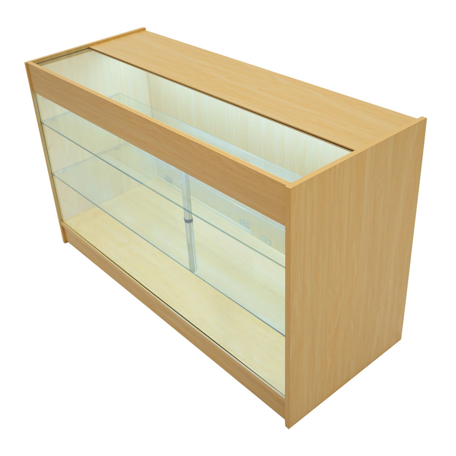 Gefertigt aus hochwertigem MDF mit strapazierfähiger Melaminbeschichtung und gehärteten Glasplatten, ist der K1500 Tresen auf dauerhafte Leistung in stark frequentierten Geschäftsräumen ausgelegt. Die hellweiße LED-Beleuchtung verleiht Ihren Ausstellungsstücken einen klaren, professionellen Glanz und stellt sicher, dass Ihre Produkte auch bei schwächerem Licht optimal präsentiert werden. Die schlichte Ahorn-farbige Oberfläche verleiht dem Tresen ein edles Erscheinungsbild, das sowohl moderne als auch klassische Ladeneinrichtungen ergänzt.