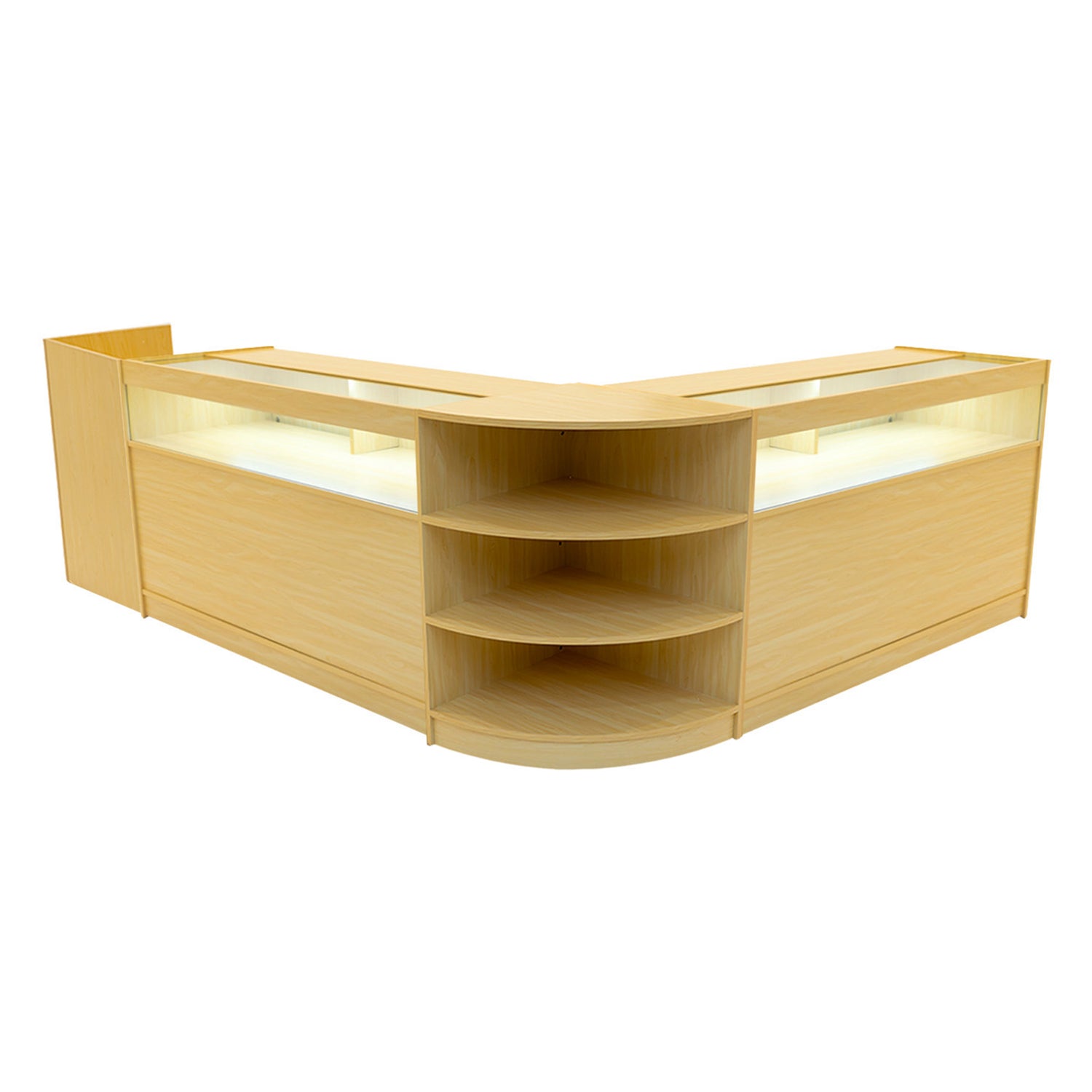 Die LM60 gebogene Ecktheke bringt platzsparende Funktionalität und fließendes Layout in Ihren Verkaufsraum. Ihr kompakter, gebogener Aufbau ermöglicht eine saubere Integration in Ecken oder eine nahtlose Verbindung mit geraden Theken, um ein einheitliches Thekensystem zu schaffen. Die LM60 verfügt über drei offene, kundenseitige Präsentationsregale, die die Produktpräsentation und Zugänglichkeit maximieren – ideal zur optimalen Nutzung von Ecken, ohne das Layout zu stören.