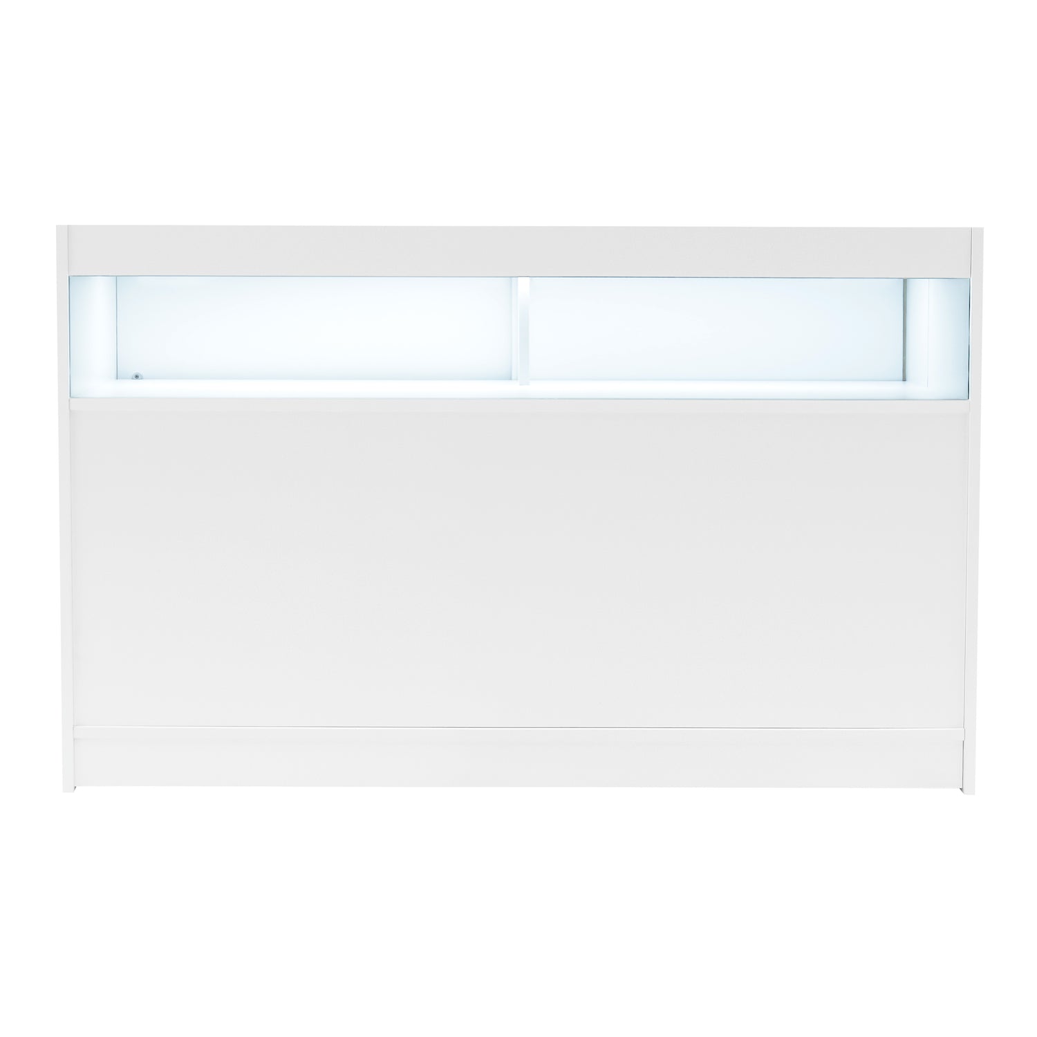 Die B1500 LED-Verkaufstheke bietet eine schlanke, moderne Präsentationslösung, die visuelle Wirkung mit alltäglicher Praktikabilität vereint. Jede Einheit verfügt über hellweißes LED-Licht, das die Sichtbarkeit der Produkte erhöht und sicherstellt, dass Ihre Waren auch bei schwächerem Licht ins Auge fallen. Mit einem Präsentationsregal und zwei geschlossenen Regalen bietet die B1500 die ideale Balance zwischen sicherer Aufbewahrung und Produktpräsentation. Abschließbare rückseitige Schiebetüren halten den Lagerbestand sicher und sorgen gleichzeitig für ein sauberes, elegantes Erscheinungsbild zur Kundenseite. Ob Schmuck, Accessoires oder hochwertige Artikel – die B1500 liefert einen professionellen, glänzenden Blickfang.