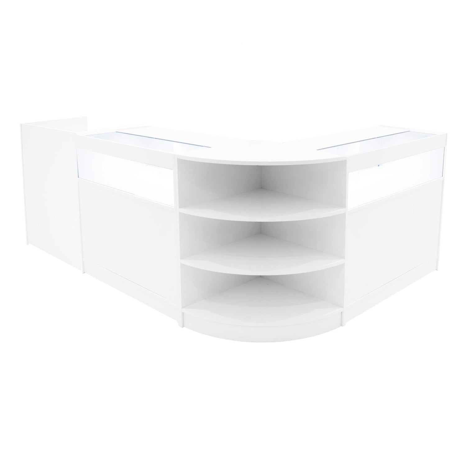 Die LM60 gebogene Ecktheke bringt platzsparende Funktionalität und fließendes Layout in Ihren Verkaufsraum. Ihr kompakter, gebogener Aufbau ermöglicht eine saubere Integration in Ecken oder eine nahtlose Verbindung mit geraden Theken, um ein einheitliches Thekensystem zu schaffen. Die LM60 verfügt über drei offene, kundenseitige Präsentationsregale, die die Produktpräsentation und Zugänglichkeit maximieren – ideal zur optimalen Nutzung von Ecken, ohne das Layout zu stören.
