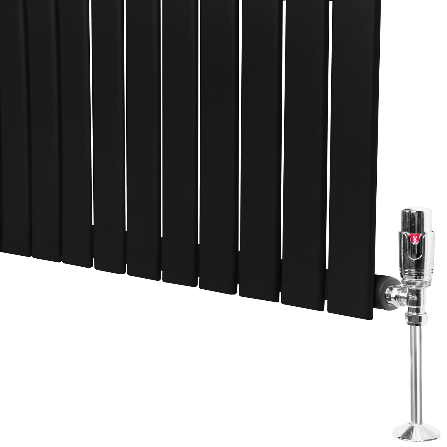 Verleihen Sie Ihrem Zuhause wohlige Wärme mit unseren Flachheizkörper in Schwarz inklusive thermostatischem Chromventil-Set, eine perfekte Kombination aus zeitloser Eleganz und moderner Effizienz.