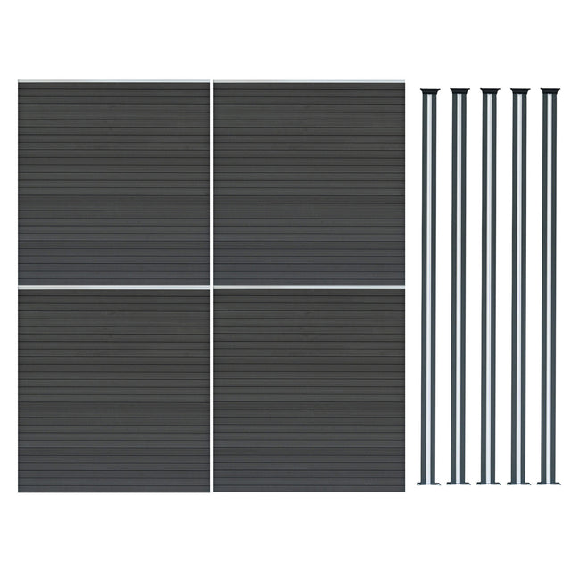 WPC Sichtschutzzaun x4 & LED Zaunpfosten x5 - Grau