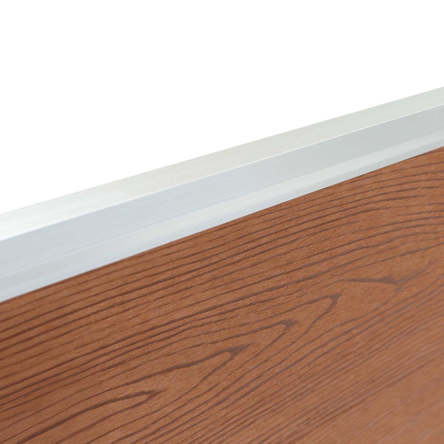 Ein besonderes Highlight ist das vielseitige, beidseitige Design: Eine Seite zeigt eine durchgehende Holzmaserung, während die Rückseite mit einer modernen Lamellenoptik überzeugt. Beide Seiten sind in einem eleganten Braunton gehalten, der die natürliche Schönheit von Holz einfängt – ganz ohne den Aufwand regelmäßiger Pflege.