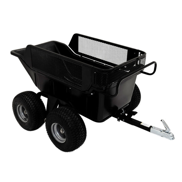 Mit Fokus auf Langlebigkeit ist der Anhänger mit einem robusten Stahlrahmen und einer Wanne aus hochdichtem Polyethylen ausgestattet, sodass er den Belastungen durch häufigen, schweren Einsatz standhält. Seine vier 18-Zoll-Gummireifen sorgen für ausgezeichnete Traktion und Stabilität, auch auf unebenem oder weichem Untergrund. Diese Kombination aus starken Materialien und zuverlässigen Rädern macht den Anhänger einsatzbereit, wo auch immer die Arbeit Sie hinführt.