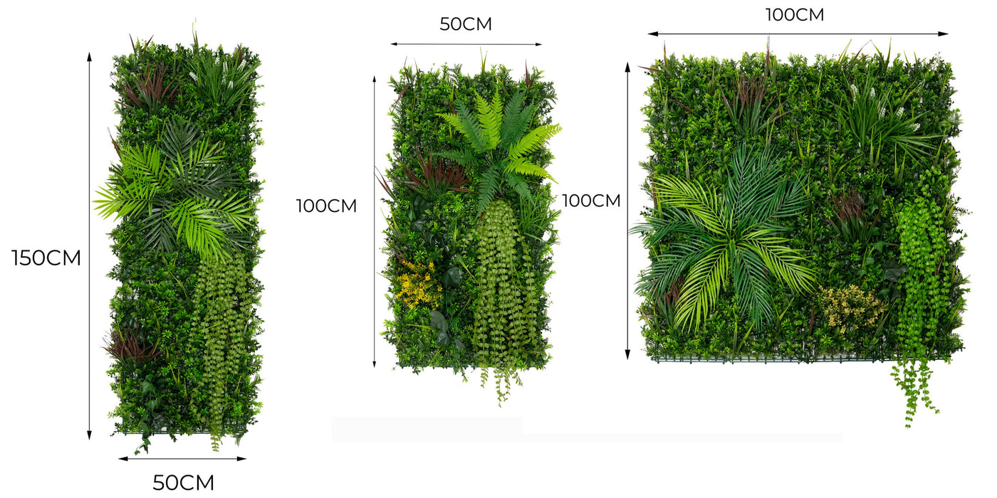 Mit einer Größe von 100 cm x 100 cm bieten diese Fliesen großzügige Abdeckung, sodass Sie mühelos das Erscheinungsbild einer realistischen Pflanzenwand schaffen können. Ihre strukturierte, aber flexible Form sorgt für eine nahtlose Anpassung.