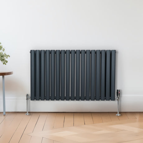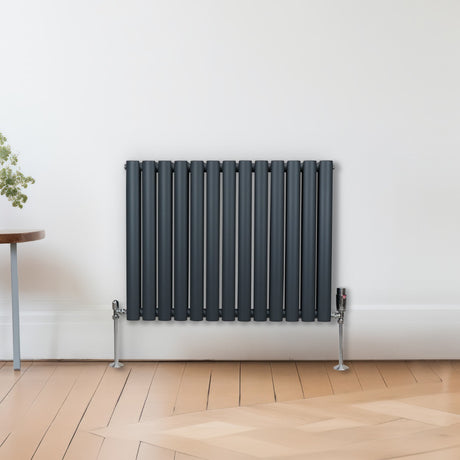 €394,99Grundpreis /Nicht verfügbar Oval Röhrenheizkörper & Chrom Thermostatventile – 1800mm x 600mm - Anthrazitgrau