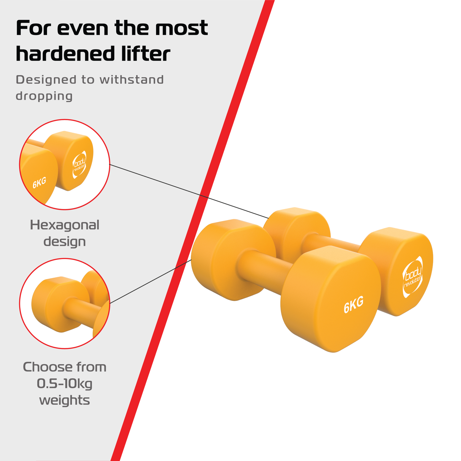 Geeignet für Zuhause, draußen oder im Fitnessstudio – diese Hanteln vereinen Funktionalität, Stabilität und Leistung. Sie stehen für das Ziel von Body Revolution: hochwertige Fitnessausrüstung für alle zugänglich zu machen. Kompakt, zuverlässig und einfach zu handhaben – ein Muss für alle, die mit leichtem Widerstand trainieren möchten.