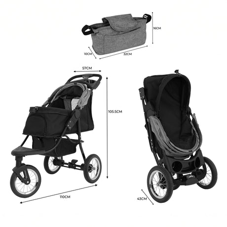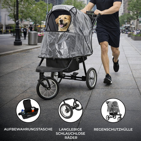 Auf Lager€109,99Grundpreis /Nicht verfügbarHaustierwagen mit Regenabdeckung und Fronttasche – Gewebtes Grau
