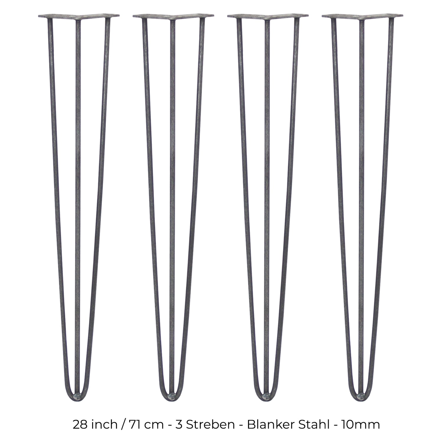 4x 71cm Hairpin Tischbeine 3 Streben - 10mm - Rohstahl