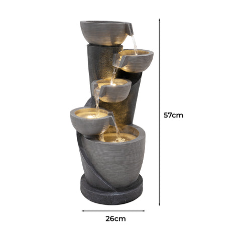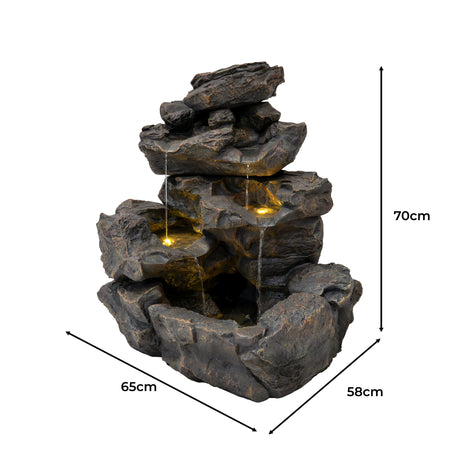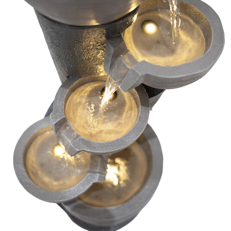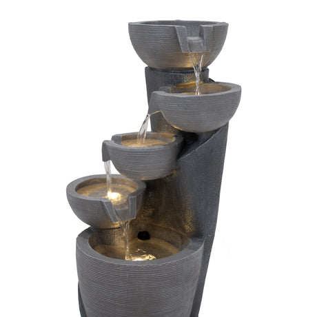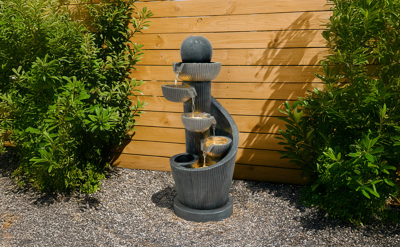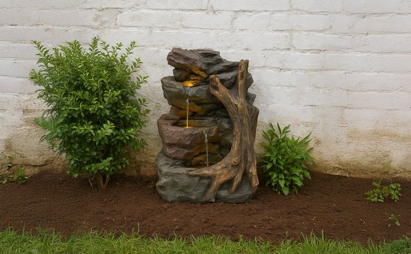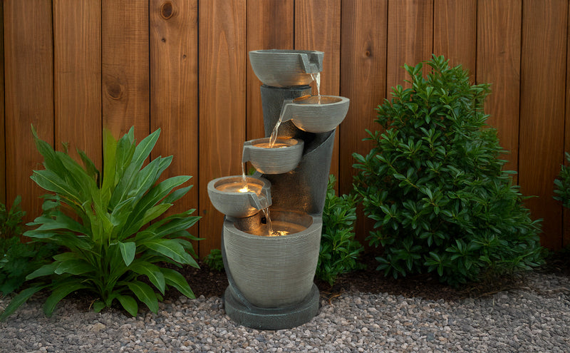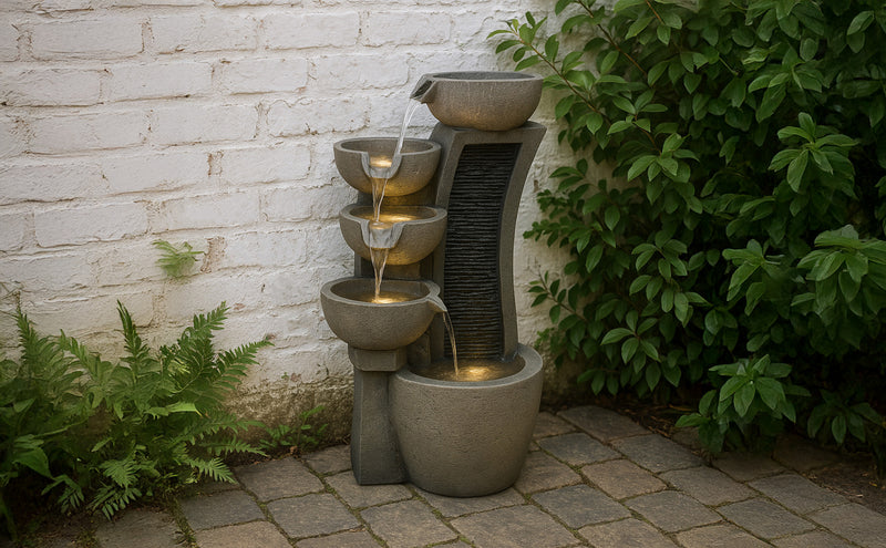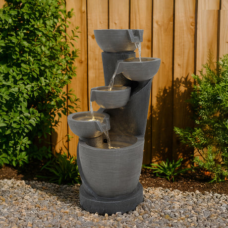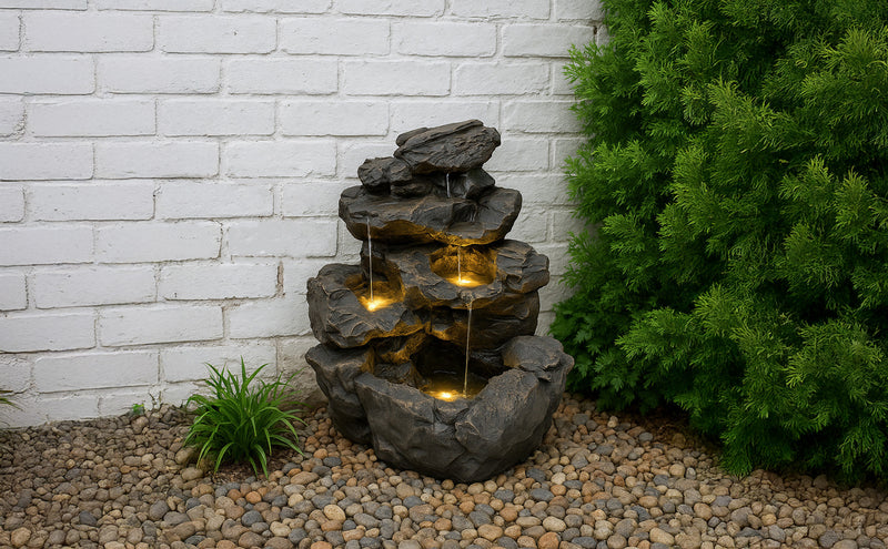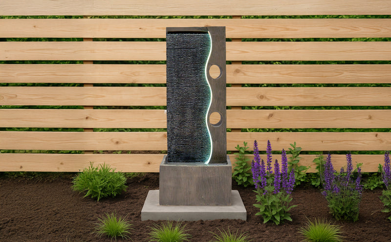 Die Kombination aus langlebigen Materialien, atmosphärischer Beleuchtung und durchdachtem Zubehör macht die Serenity Falls zu einem einladenden Mittelpunkt für alle, die ihrem Garten oder ihrer Terrasse ein Element der Ruhe hinzufügen möchten. Ob beim Unterhalten von Gästen oder beim Genießen eines stillen Moments – dieses Wasserspiel bietet eine wunderschön ruhige Kulisse für das Leben im Freien.