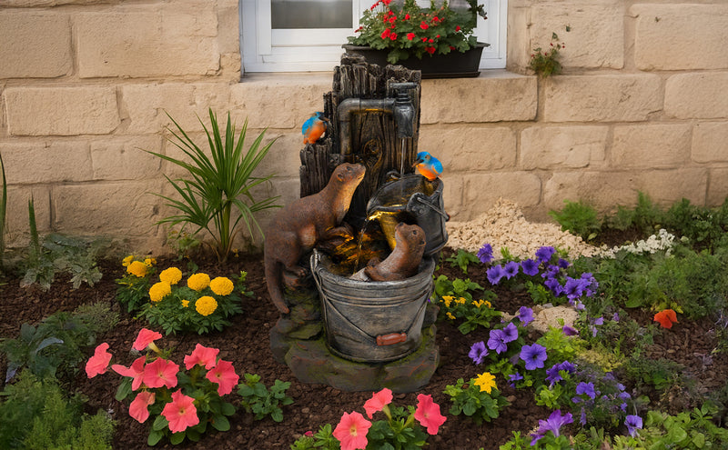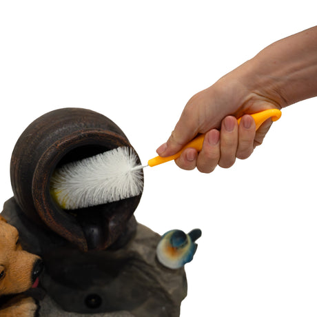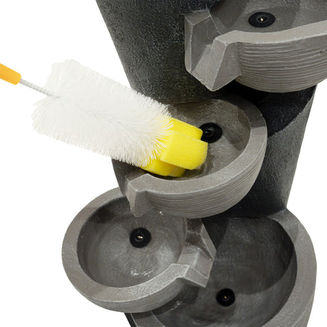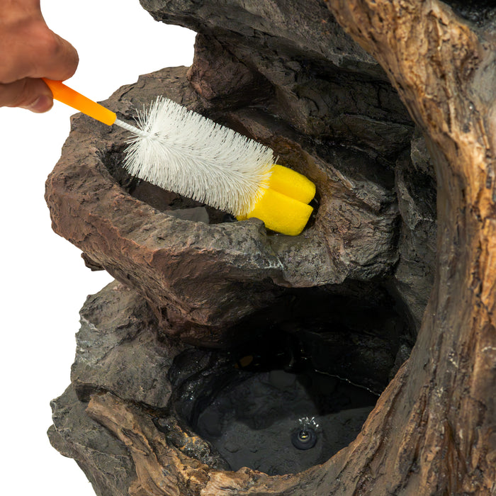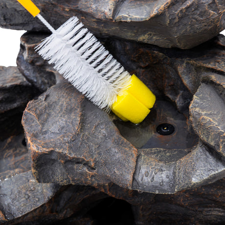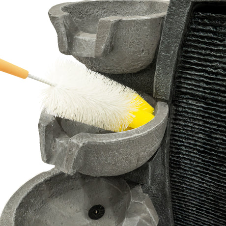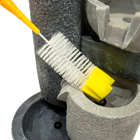 Die elektrische Pumpe sorgt für einen gleichmäßigen Wasserfluss und bringt mit minimalem Aufwand Leben in Ihren Außenbereich. Dank des großzügigen 7-Meter-Kabels haben Sie maximale Flexibilität bei der Platzierung – ideal für jede Gartengestaltung. Für eine einfache Pflege wird die Serenity Falls mit einer praktischen Reinigungsbürste geliefert, sodass die natürliche Schönheit und Leistung der Wasseranlage langfristig erhalten bleibt.