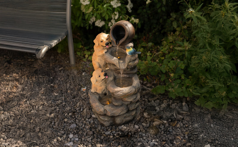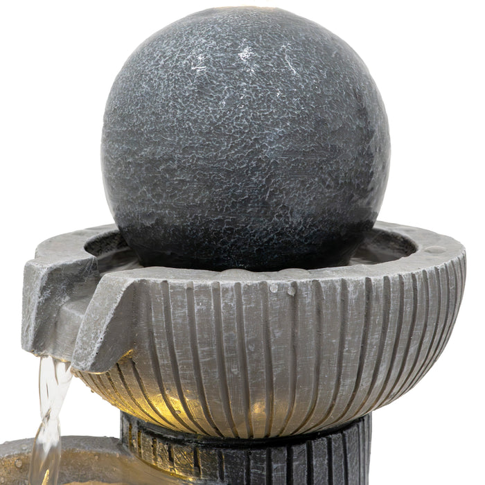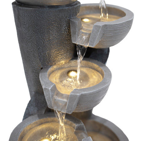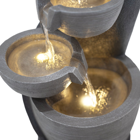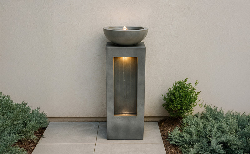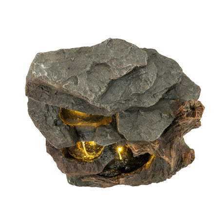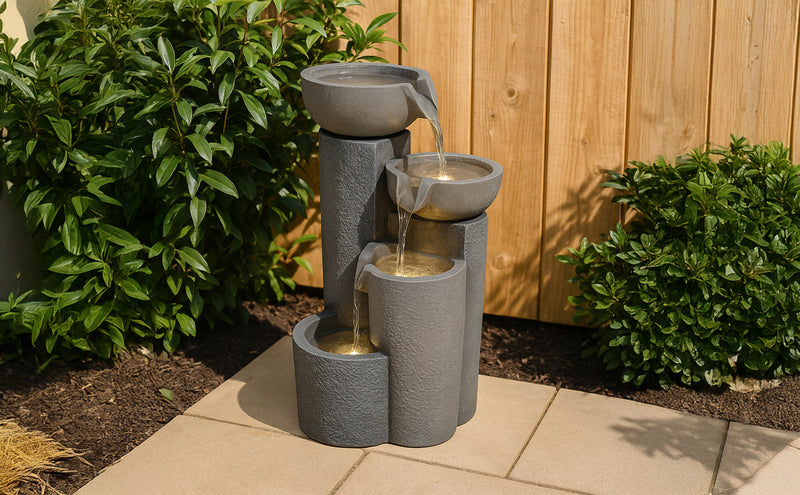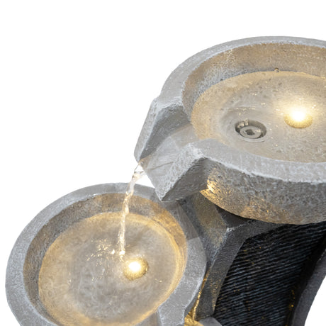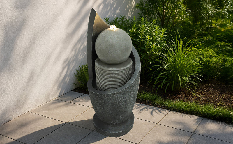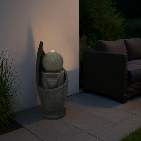 Gefertigt aus robustem Zement ist die Serenity Falls so konzipiert, dass sie den Außenbedingungen standhält, während sie gleichzeitig ein natürliches, steinähnliches Aussehen bewahrt, das sich nahtlos in verschiedene Gartengestaltungen einfügt. Zwei warmweiße LED-Leuchten beleuchten das fließende Wasser sanft und verstärken dessen entspannende Wirkung bei Einbruch der Dämmerung. Ob bei Tageslicht oder stimmungsvoll beleuchtet am Abend – dieses Wasserspiel verleiht Ihrer Außendekoration eine friedliche und stilvolle Note.
