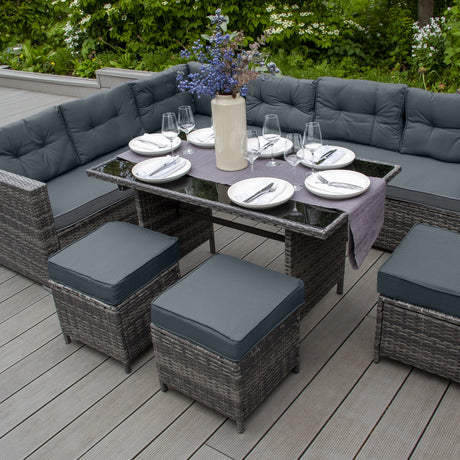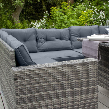 Verbessern Sie Ihr Outdoor-Sitzerlebnis mit unseren hochwertigen Ersatzkissen für Gartenmöbel, die speziell für unsere Jardi Rattan-Eckgarnitur entwickelt wurden.