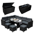 Verwandeln Sie Ihren Outdoor-Bereich in eine Oase des Stils, des Komforts und der Organisation mit unserem Rattan Ecksofa Esszimmer-Set und Kissenbox-Bundle.