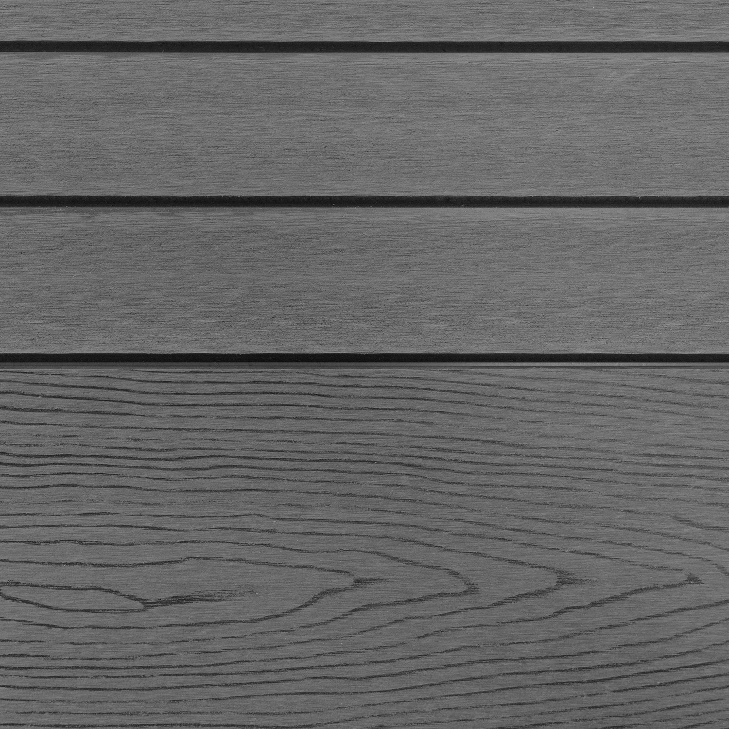 Ein besonderes Merkmal dieses Verbundzauns ist sein vielseitiges, beidseitig nutzbares Design: Eine Seite zeigt eine durchgehende Holzmaserungsoptik, während die Rückseite mit einer modernen Lamellenstruktur überzeugt. Beide Seiten der Paneele präsentieren sich in einem eleganten Grauton, der die Schönheit von Holz einfängt, ohne regelmäßige Pflege zu erfordern.