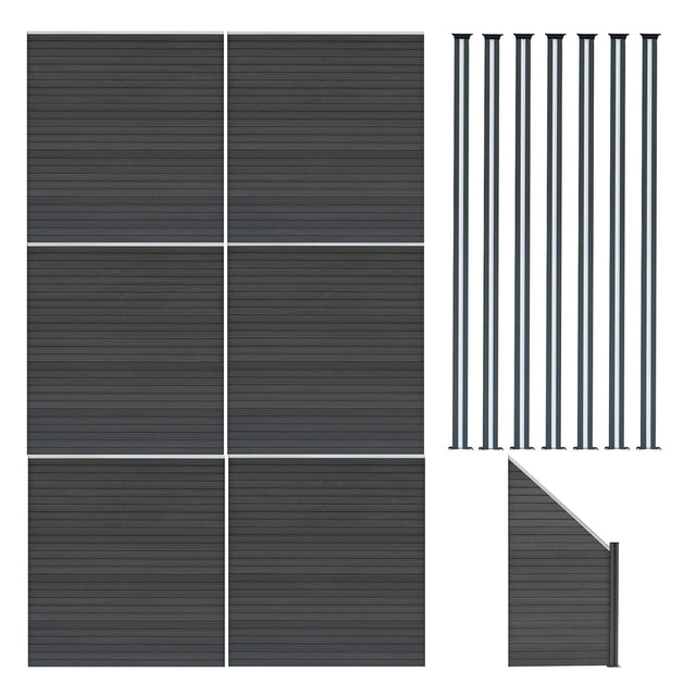 WPC Sichtschutzzaun x6, Eckstück x1 & LED Zaunpfosten x7 - Grau
